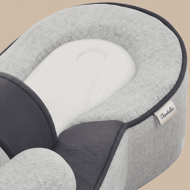 Nestelle was designed using established infant sleep principles, supportive positioning, and breathable materials suitable for newborns. The gentle incline and cocoon-shaped design help support a more comfortable resting position, especially after feeds, while still maintaining a safe and open sleep environment for your baby.